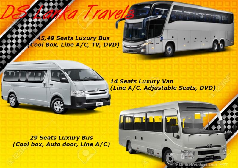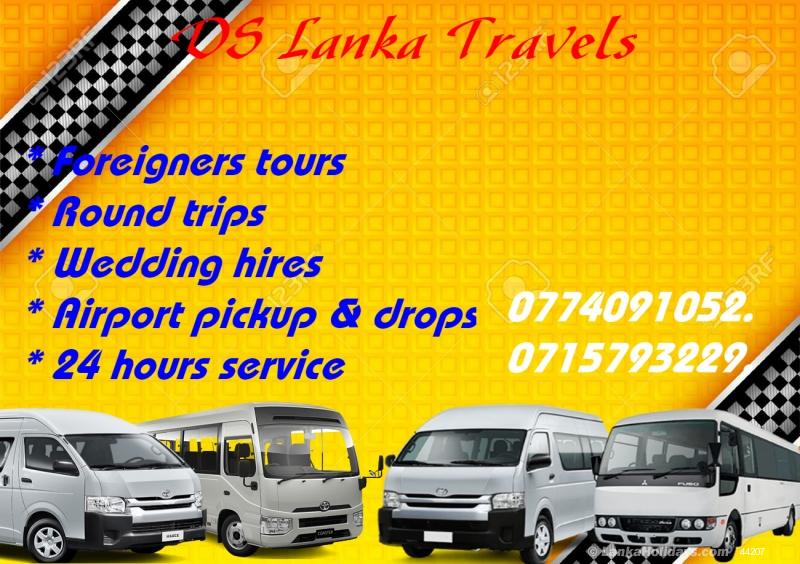 විනෝද චාරිකා, වෙඩින් හයර් ,හදිසි ගමන් වැනි ඔබගේ සියලුම ගමන් අවශ්යතාවයන් සඳහා ආසන 7, 9, 10, 12 , 14 සුඛෝපභෝගී වැන් රථ, බස් රථ* ඔබ ගමන් කරන දුර ප්රමාණයට පමනක් අයකිරීම.* නියමිත වෙලාවට සේවය.* දිවයිනේ ඕනෑම ප්රදේශයක මාර්ග පිලිබඳ මනා දැනුමැති සුහදශීලී රියදුරු මහතුන්ගේ සේවය* දුර ගමන් සදහාම සැකසූ වෑන් රථ.* අවම හා ඉතා සාධාරණ අයකිරීම්.* සුවපහසු එජස්ටබල් ආසන.* පැය 24 සේවය.