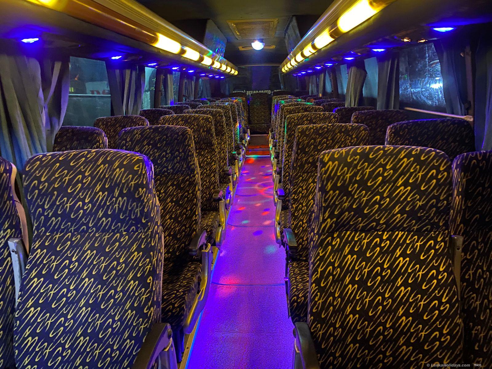 Line A/C / Adjustable Full Seats / TV/DVD /Curtain / Under Luggages / USB Sound System/ karoake mic/ Party lights